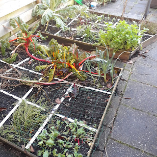 Het is al weer een tijdje geleden dat ik een blog heb geschreven. Ik heb dan ook niet echt wat gedaan in de tuin. In de winter is er natuurlijk ook gewoon veel minder te doen. De winter is ook gewoon om even lekker te rusten van de moestuin en eventueel de bewaarde oogst op te eten. Mijn bakken staan ook nog vol met vanalles zoas je hiernaast kunt zien. In verschillende Facebookgroepen, waar ik lid van ben, zijn al weer heel wat mensen begonnen. Eerlijk gezegd heb ik nog niet zin om al weer te zaaien. En het is ook nog best vroeg. Vorig jaar ben ik zo'n beetje eind januari gestart en dat is me prima bevallen. Je moet in januari trouwens ook gewoon nog extra licht gebruiken, want anders kun je beter gewoon wat later beginnen. De pepers hebben nou eenmaal een lang groeiseizoen en moeten dus vroeg gezaaid worden. Ik zag zelfs al mensen die tomaten hebben gezaaid!! Ik vraag me af hoe je die nog tot half mei goed kan houden. Of je moet een kas hebben dan kan het iets eerder. Ik wacht daar nog mee tot begin april.